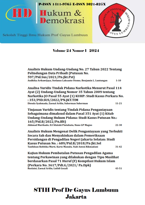 Analisis Hukum Undang-Undang No. 27 Tahun 2022 Tentang Pelindungan Data Pribadi (Putusan No. 597/Pid.Sus/2021/Pn.Jkt.Pst)